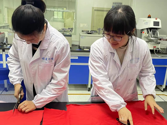 务实干 质量技术服务“全速”跑 落实工作服务制,开年来加班加点受理出证,保质保效完成检测项目22217项。组织技术服务队伍,为前来取经的361度童装等企业人员提供一对一技术培训、开展技术交流,先后开展了色牢度与物理性能等2大类、12个子项目的实验教学,并完成培训验收考核,培训企业实验人员4名,为企业搭建外部技术培训高质量平台。深入企业一线,分别为森马、中乔等企业解决了面料掉纤、面料发红等质量问题,疏通企业“堵点痛点”,助力企业稳质稳产。