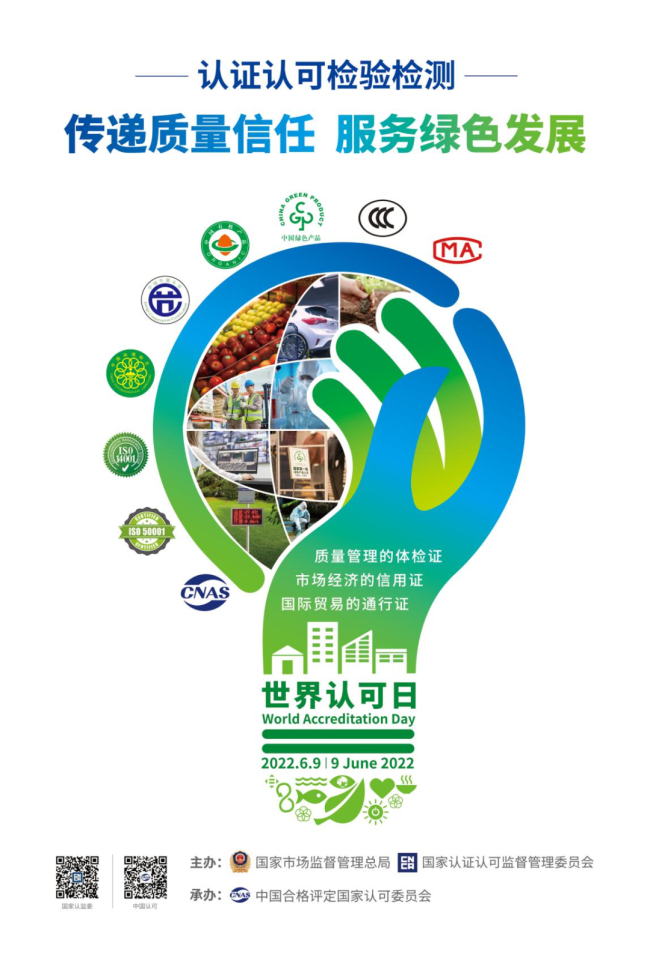 第十五个“世界认可日”来啦! 2022年6月9日是第十五个“世界认可日”,今年的世界认可日国际主题为“认可促进经济和环境可持续发展”,中国的主题为“认证认可检验检测:传递质量信任,服务绿色发展”。