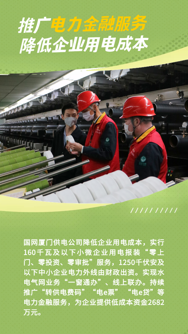 当前,我国正处于决定全年经济走势的关键节点,国网福建省电力有限公司迅速贯彻省政府《关于贯彻落实扎实稳住经济一揽子政策措施的实施方案》,结合国家电网公司“全力服务扎实稳住经济的八项举措”,制定实施十项举措,充分发挥中央企业“顶梁柱”作用,积极为稳住经济大盘、服务“六稳”“六保”作贡献。 (来源:国网福建电力 供稿 | 陈蒸 柯俊明 邵淑婉 唐伟 陈泉峰 类美容 陈越颖 林翀 邱静 等) |