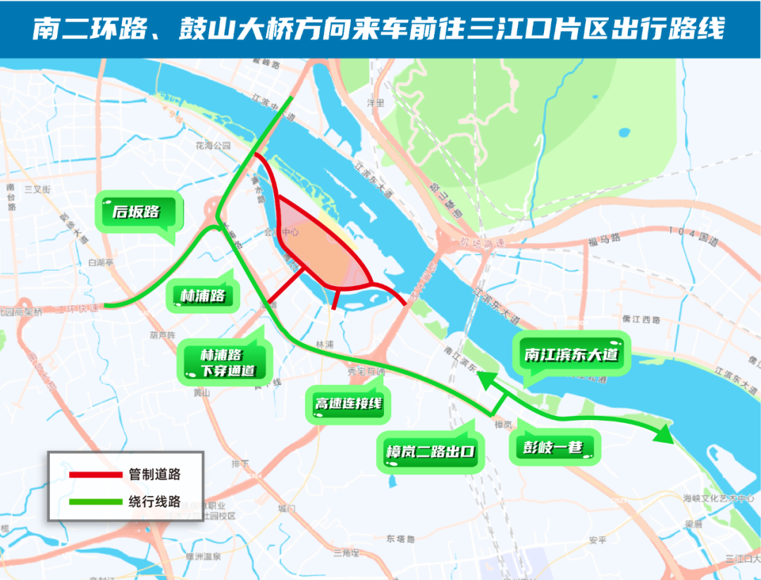 2025世界航海装备大会将于10月16日至19日在海峡国际会展中心举办,参会人员、观展人员及周边居民、过境车辆可扫描下方二维码,快速查看大会期间的交通出行提示。 交通管制信息 关于2025世界航海装备大会期间部分道路实行临时交通管制的通告 开幕式期间出行提示 参会人员 (持大会专用证件人员) 01. 地铁出行 通过地铁4号线前往会展中心地铁站后步行到达海峡会展中心。通过地铁6号线前往潘墩地铁站,后步行到达海峡会展中心或乘坐公交接驳专线前往海峡会展中心。 02. 出租车、网约车出行 市区——后坂路——濂水路——在潘墩路濂水路口西侧路段临时上下客,后步行到达海峡会展中心或乘坐公交接驳专线前往海峡会展中心。 03. 公交接驳线路 潘墩路濂水路口西侧路段网约车下车点——濂水路——潘墩路(林浦路口调头)——会展环岛——会展中心南广场,车辆停靠闽江世纪金源会展大饭店公交车站和聚春园会展酒店公交车站(人员凭大会专用证件上下车)。 周边居民 01. 管制期间自驾出行 闽江世纪城小区居民、世纪金源购物中心人员出行路线 ①福峡路、南二环路、鼓山大桥、南江滨西大道(上渡、仓前、连江路方向)方向来的车辆:可由后坂路——濂水路进出。 ②高速连接线方向来的车辆:可由林浦路——牛浦二路——濂水路——进入B区和购物中心;或林浦路——牛浦一路——合浦支路——合浦路——濂水路——进入A区。 潘墩新城小区、印象外滩小区居民出行路线 ①林浦路、潘墩路方向进入小区的车辆:可凭社区发放的车辆出入证明,由林浦路潘墩路口——潘墩路——濂水路进入潘墩新城小区、印象外滩小区。 ②三环路方向进入小区的车辆:可经高速连接线辅道——球山路/霞洲路返回小区。 ③出小区的车辆:可由球山路/霞洲路——高速连接线辅道——林浦路,后续经林浦路潘墩路口离开。 02. 公共交通出行 开通霞洲路至东部办公区接驳专线,线路:霞洲路公交车站始发——霞洲路——林浦路——牛浦二路——濂水路——后坂路——南江滨大道——南社二路——东部办公区公交站——南社二路——南江滨大道——霞洲路,停靠站点:霞洲路站、林浦地铁站、林浦霞洲路口站、浦下牛浦站、濂水浦下站、濂水路口站、东部办公区(石碑兜)站、东部办公区(南社二路)站,返程仅停靠东部办公区(石碑兜)站。 过境车辆 南二环路、鼓山大桥方向往来的车辆:可由后坂路——林浦路——林浦路下穿通道——高速连接线——樟岚二路出口——高速连接线辅路——彭岐一巷——南江滨东大道行驶——前往三江口片区的金沙公园、梁厝街区等地。 南江滨西大道(上渡、仓前方向)方向来的车辆:可由后坂路——福峡路——三环路辅路——南江滨东大道行驶——前往三江口片区的金沙公园、梁厝街区等地;连江路方向来的车辆:可由福峡路——三环路辅路——南江滨东大道行驶——前往三江口片区的金沙公园、梁厝街区等地。 展会期间出行提示 01. 公共交通出行 1、乘坐地铁4号线在“会展中心地铁站”下车或乘坐地铁6号线在“潘墩地铁站”下车,后步行到达海峡会展中心;或从“潘墩地铁站”B口出站后步行160米至“聚春园酒店”公交站换乘公交车进入海峡会展中心。 2、乘坐公交车前往会展东路公交总站、会展西路公交总站,后步行进入海峡会展中心。 02. 出租车通行线路 出租车可参照持证车辆流线通行,进入会展中心线路: 1、三环路方向来的车辆可由秀宅互通南江滨大道出口进入三环路辅路,后经南江滨东大道——浦下洲路——会展东路——会展东路出租车下车点。 2、南二环路、鼓山大桥方向来的车辆可由后坂路——南江滨大道——会展西路——会展西路出租车下车点。 3、南江滨西大道(上渡、仓前、连江路方向)来的车辆可由南江滨西大道——会展西路——会展西路出租车下车点。 4、会展中心内部通道较为畅通时,林浦路、潘墩路方向来的车辆可由展城环岛进入会展中心内部通道,停放在1号馆、5号馆前定点出租车停车区上下客。 03. 社会车辆出行线路 1、在会展中心各停车区域车位较为宽裕时,社会车辆允许驶入会展中心,经会展西路进入浦下洲路停放在沿线各停车区(会展中心东侧、西侧地下停车场、冠城大通地下停车场),或经会展中心外环岛右转进入南江滨大道,在浦下洲路口掉头,进入浦下洲路停放在沿线各停车区(会展中心东侧、西侧地下停车场、冠城大通地下停车场)。 2、当会展中心停车区车位趋于饱和时,交警部门将对会展中心实行临时交通管制,社会车辆不再允许驶入会展中心,需在会展中心外围停车场乘坐公共交通前往会展中心。 04. 网约车出行 参照社会车辆出行线路,如遇有临时交通管制,则参照开幕式期间流线通行。 请广大市民提前安排好出行线路,按照交通指挥人员的指挥和交通标志、标线指示,有序通行。 |