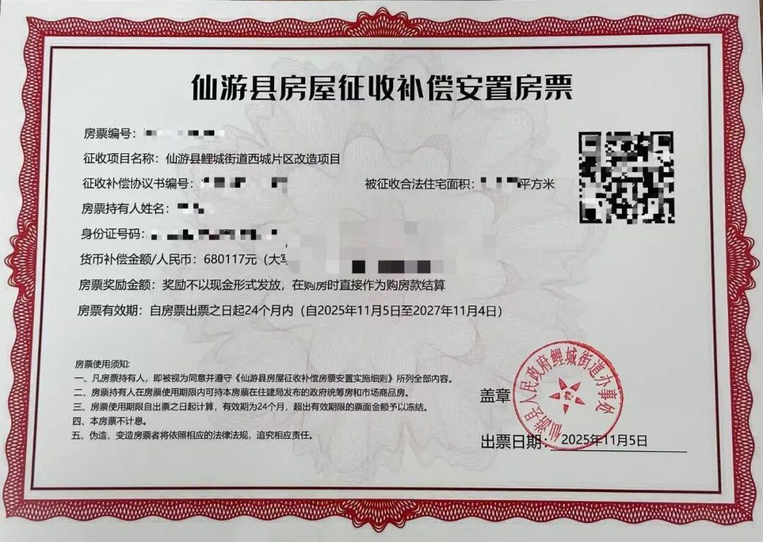 5日,莆田仙游县首张房票正式落地。白塔村村民林先生因涉鲤城西城片区改造项目而获得。这标志着“房票安置”在当地启动。
