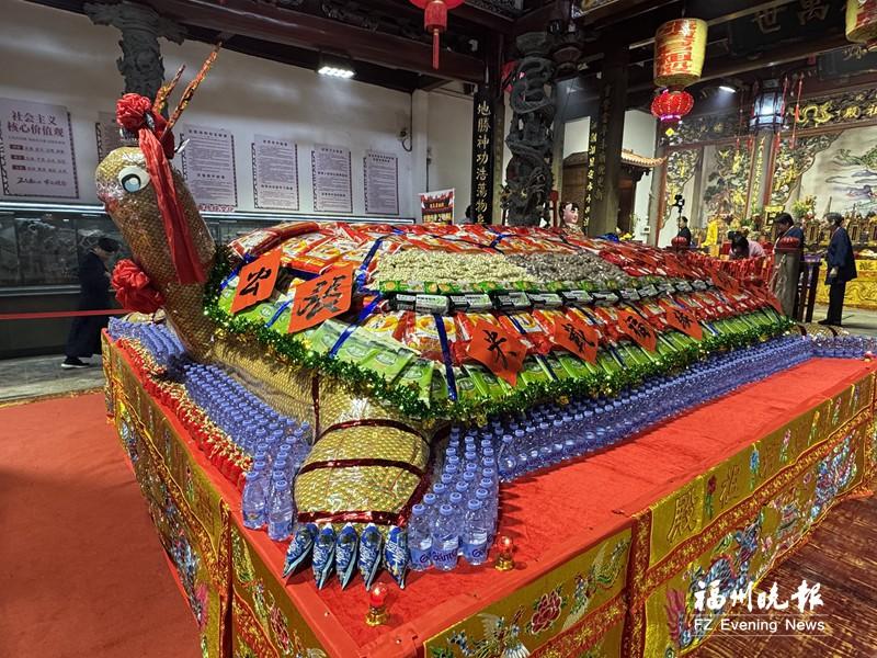 巨型米龟亮相 两岸同胞祈福 位于上下杭街区,将摆放至12月22日 15日,张真君与乞龟米文化交流活动在位于上下杭历史文化街区的张真君祖殿举行。由台湾米龟传承工匠团队制作的重达8444千克的巨型米龟亮相现场,吸引不少市民游客前来观赏、祈福。