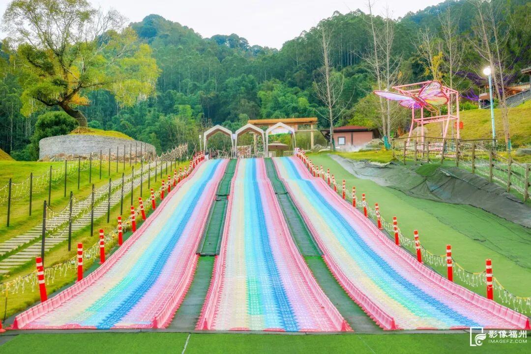 彩虹滑道、儿童滑梯、蝴蝶秋千……丰富的游乐设施为家长们提供了一个遛娃好去处,亲子家庭可以在互动中感受露营乐趣,也为连江乡村注入童趣活力。