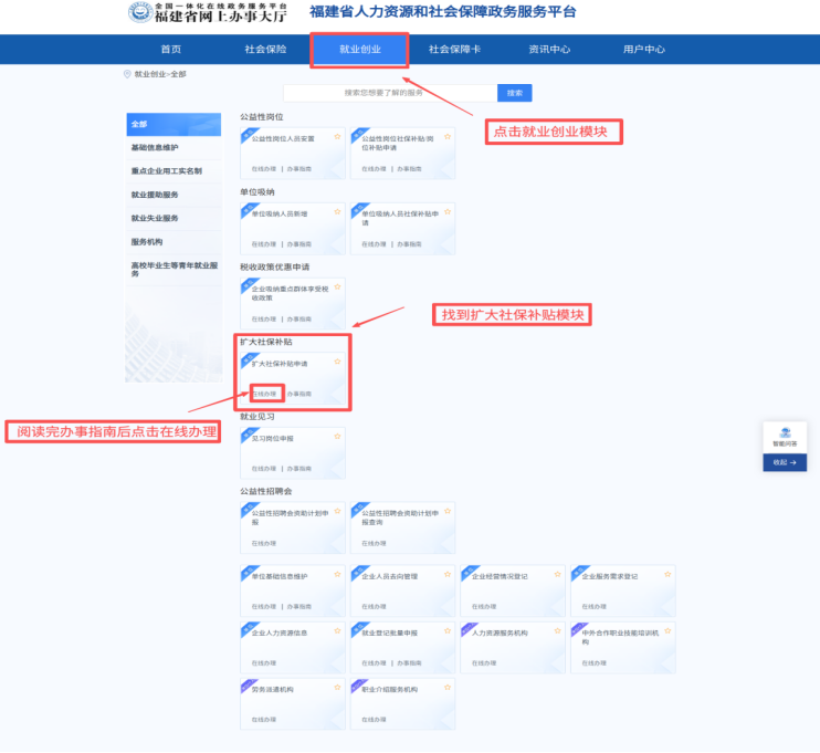 根据《福建省人民政府办公厅关于进一步加大稳就业政策支持的通知》(闽政办〔2025〕24号)文件精神,为激励支持企业扩岗吸纳就业,新出台扩大社会保险补贴政策,现福州市全面推动政策落实,请符合条件的中小微企业赶紧看过来! 每月可享受25%社保补贴!最长可申领12个月!福州市申请扩大社保补贴的超详细指南来了! 一、补贴对象及条件 在福建省重点行业领域的中小微企业就业,签订1年以上劳动合同,且2025年企业按规定为其新缴纳或继续缴纳企业职工基本养老保险费、城镇职工基本医疗保险费和失业保险费的重点群体。 (一)福建省重点群体 1.2025届高校毕业生。指于2025年1月1日至12月31日期间取得国家承认大专及以上学历毕业证书的全日制高校毕业生,并且于2025年在福建省重点行业领域的中小微企业实现参保就业。 2.2023、2024届离校未就业的高校毕业生。指毕业年度(7月1日之前)未落实就业单位,之后实现就业且当前参保单位为其首次且唯一就业记录的高校毕业生。 3.2025年登记失业半年以上人员。指曾经在公共就业服务机构办理失业登记,连续失业时间达到或超过6个月,并且于2025年才实现失业转就业的人员。 4.防止返贫监测对象。指农业农村部门提供确认的防止返贫监测对象名单中已实现参保就业的人员。 (二)重点行业领域 属于制造业和生活服务业的中小微企业。 行业分类:制造业参照《国民经济行业分类》(GB/T4754-2017)及相关最新规定;生活服务业参照《国家统计局关于印发生活性服务业统计分类(2019)的通知》(国统字〔2019〕44号)及相关最新规定。 企业规模:中小微企业划分标准参照《国家统计局关于印发<统计上大中小微型企业划分办法(2017)>的通知》及相关最新规定执行。 二、补贴标准和补贴期限 按照重点群体个人实际缴纳的社会保险费(基本养老保险+失业保险+医疗保险)的25%给予社会保险补贴;三项社会保险费均须缴纳。“新缴纳”:指重点群体在该企业首次建立社保关系。“继续缴纳”:指重点群体在该企业的社保关系在2025年1月1日前已存在,且在2025年内持续正常缴费。 补贴期限为1年;从企业2025年为其实际缴纳社会保险费当月开始计算,中途解除或终止劳动关系的,不再享受相应补贴。 三、补贴申请发放方式 社会保险补贴资金由企业代为申请,采取“先缴后补、按月发放”方式,按月直接发放到个人社保卡账户,首次申请期限至2025年12月底(允许多次申请),补贴发放时间至2026年12月底。 本次扩大社保补贴申请采用线上、线下结合方式,用人单位可自主选择。 线上办理方式 企业登录“福建省人力资源和社会保障政务服务平台”(https://zwfw.rst.fujian.gov.cn/),点击“就业创业模块——选择就业援助服务——点击扩大社保补贴申请模块——闽政通单位扫码登录”办理。 线上申请示意图 1.点击“就业创业”模块——点击“扩大社保补贴”进行在线办理