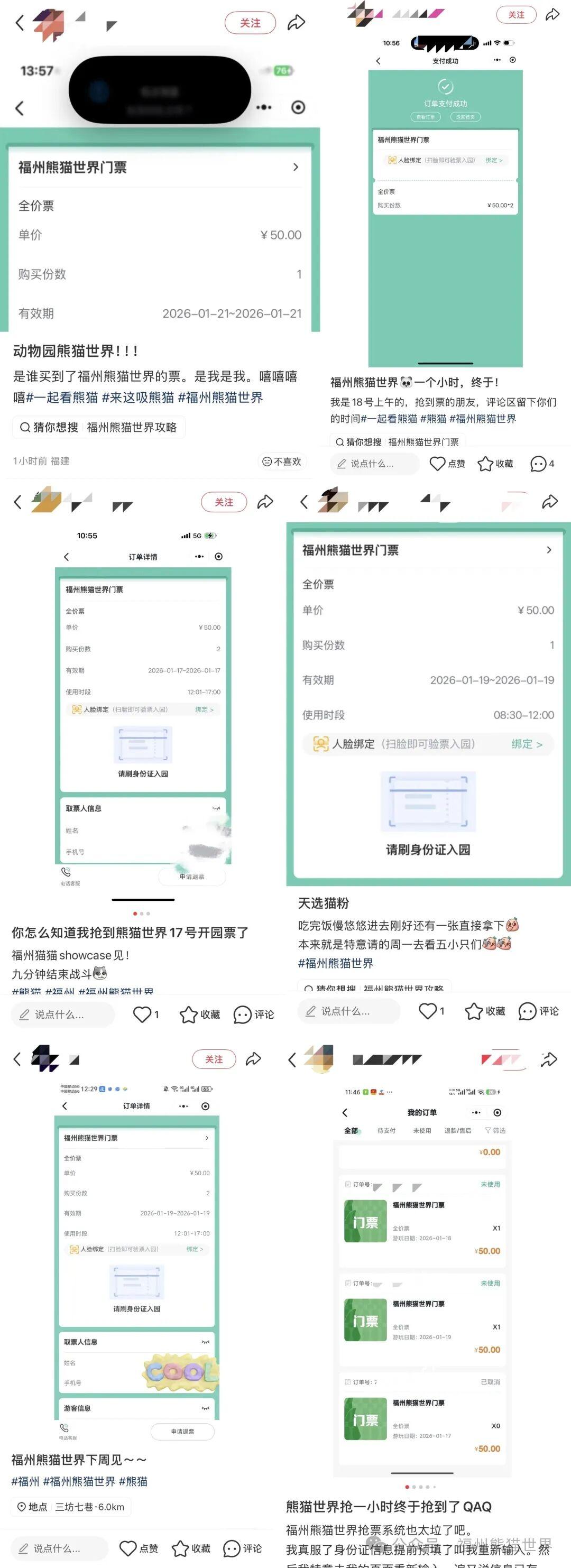 网友晒票分享 首轮预约成功的网友已晒出门票订单!喜悦满满:“终于蹲到大熊猫啦!”引来一片羡慕留言~