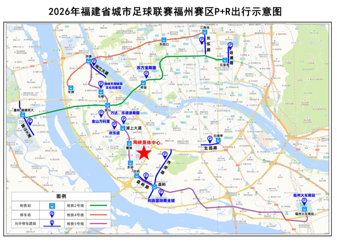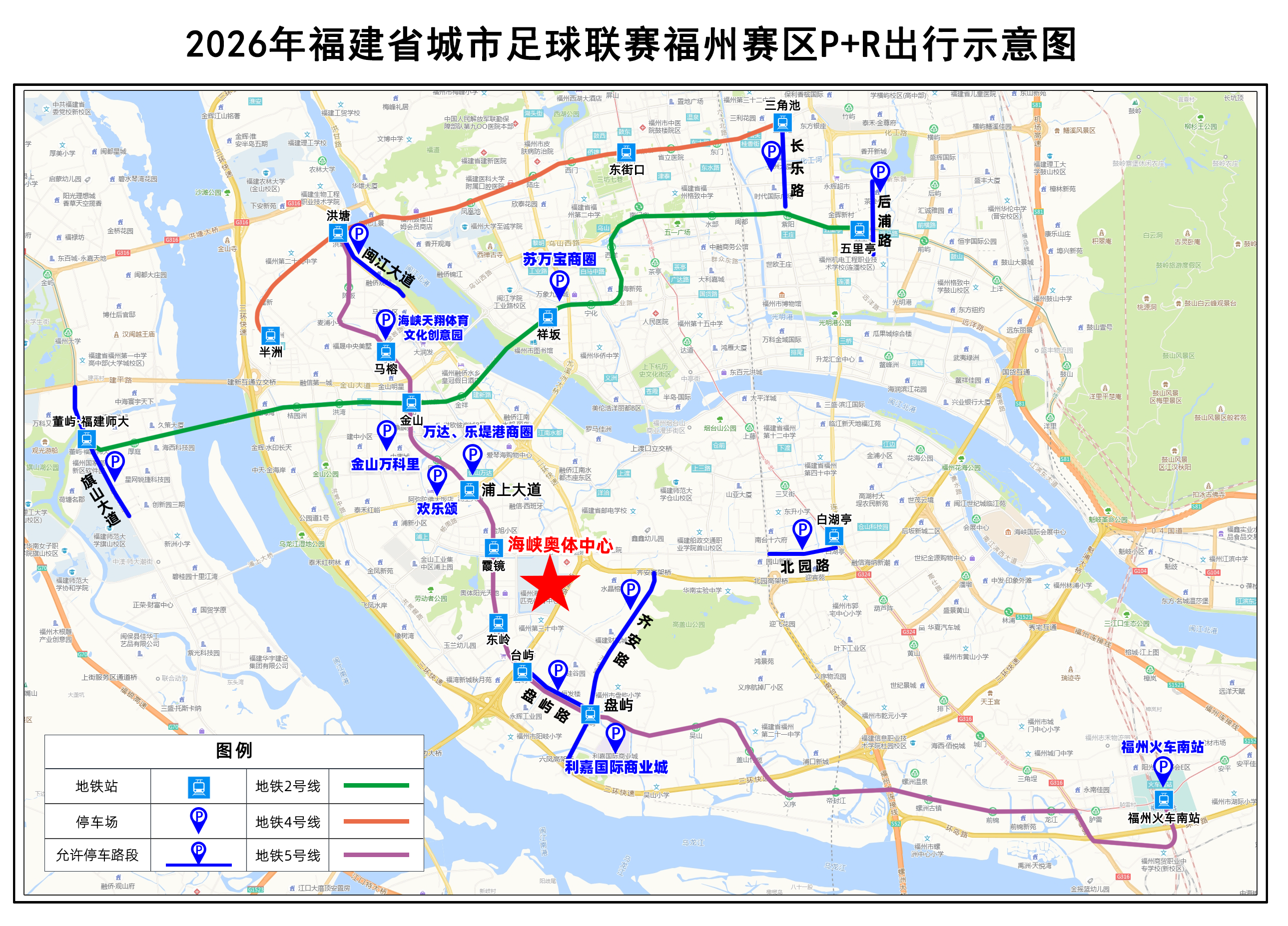 燃动八闽 热血启航 2026年福建省城市足球联赛(闽超) 将于4月19日19:00 在福州海峡奥体中心正式开幕 赛事期间 海峡奥体中心停车场不对外开放 观赛人员建议乘坐地铁、公交出行 为方便群众出行 福州交警对接交通运输部门在地铁站点 及外围停车场附近设置观众接驳点 开通2条进场接驳专线、 4条退场接驳专线 进场交通指南
