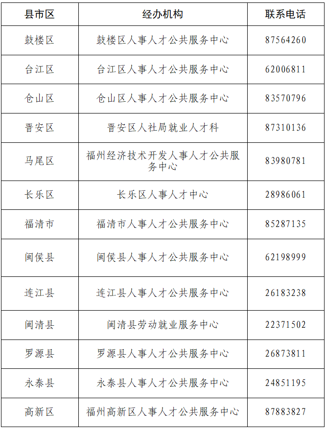 申报条件 1.申报人群:毕业5年内全日制普通大中专院校毕业生、港澳台青年、失业人员、就业困难人员、返乡入乡创业人员。 2.企业要求:2023年5月—2026年4月在福州注册,开业满3年以内的创业项目。 3.身份要求:申报人为企业法定代表人、个体工商户经营者或企业股东。 4.出资要求:申报人出资总额不低于注册资本30%。 5.限制条件:已获省、市人社部门同类创业项目资助的,不重复资助。 工作流程 网上申报: 5月1日—5月31日登录闽政通APP→搜索“福州社保”→就业创业→“植根榕城”专栏→注册填报→提交。 实地核验: 6月1日—6月30日各县(市)区、高新区人社局现场核查经营场所、资质及运营情况。 资格复审: 7月1日—7月31日市人事人才公共服务中心复审,结果在市人社局官网公示。 项目评审: 8月1日—9月10日采取书面评审+现场答辩,按总分排序确定获奖项目。 公示拨付: 9月30日前公布最终结果,扶持资金一次性直达企业账户。 经办机构名录