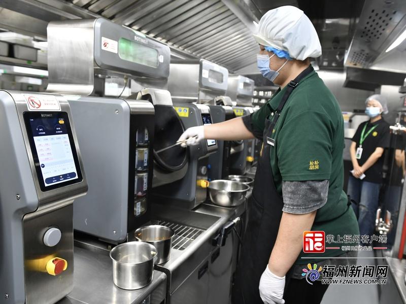 位于五一南路的朴朴厨房门店里,员工们身着统一工服,佩戴好网帽与口罩,经过严格的洗手消毒程序后,方能进入各自岗位。约500平方米的通透空间里,11个档口有序排列,统一搭建了原料冷藏、冷冻库,链式烤炉、炒菜机器人、智能煮饭柜等所有设备也统一由朴朴负责选型及采买。 一个显著的特点是,这里的档口之间采用统一空调,结合各档口的产品类型配置新风机组,由门店统一管理,确保对加工环境温度的整体有效管控。“这个方案是在台江区市场监管局指导下优化确定的。”朴朴厨房质量官薛寒微表示,从前期规划、证照办理到落地运营,台江区多次提供精准上门指导,帮助门店准确把握无堂食外卖的合规经营要求,规避了许多弯路。 针对朴朴厨房“零售+餐饮”跨界融合的业态特点,台江区市场监管局坚持靠前服务、精准赋能、全程护航。