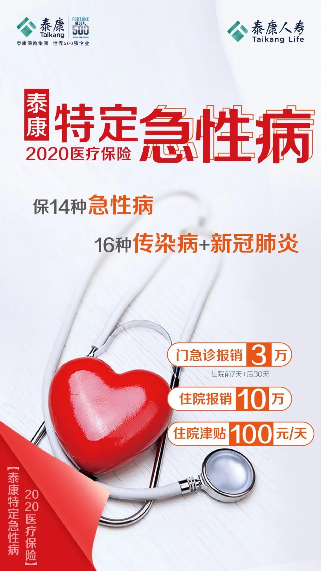 福建消费网-福建新消费讯 三月春暖花开,健康保障正当时。3月1日,泰康人寿推出“泰康特定急性病2020医疗保险”,覆盖14种急性病、16种传染病,并扩展责任至新型冠状病毒肺炎,让医疗保障更全面。 根据《中华人民共和国传染病防治法》,甲类传染病包括鼠疫和霍乱2种,乙类传染病包括传染性非典型肺炎、人感染高致病性禽流感、狂犬病、甲型H1N1流感等27种。1月20日,国家宣布将新型冠状病毒肺炎纳入法定乙类传染病。 由于甲类、乙类传染病传播性强、传播速度快、传播范围广等因素,赔付风险不确定性大,因此保险公司通常难以控制风险。甲类、乙类法定传染病在商业医疗保险中一般属于除外责任,不能理赔。 面对急性病、急性传染病的医疗保障不足,泰康勇于担当,大胆突破,推出“泰康特定急性病2020医疗保险”,让特定急性病、传染病也能报,让医疗保障更全面。 泰康特定急性病医疗险覆盖急性阑尾炎、急性脑膜炎、急性心肌梗死、急性冠状动脉综合征等14种急性病,以及鼠疫、霍乱、传染性非典型肺炎、人感染高致病性禽流感等16种传染病以及新型冠状病毒肺炎。因特定急性病导致的住院治疗基本保险金额10万元,住院前后门急诊基本保险金额3万元,住院津贴日额100元。0-54岁均可投保,保险期为1年。 该保险享有“无观察期、无免赔额、无扣减天数”:无观察期,保险生效后出险即可理赔;无免赔额,有社保投保,社保先报后100%报销,没使用社保的报60%,无社保投保的100%报销,30天内住院费用最高可报10万;无扣减天数,30天内住院每天津贴100元,可有效弥补收入损失;且本产品医疗费用报销范围突破社保目录,可对基本医保形成有力补充,有效降低患者的经济负担。 值得关注的是,泰康特定急性病医疗险是对于客户的感恩回馈。从3月1日开始,投保泰康健康险或年金险的客户享有“为爱升级”特权,免费拥有“特急医疗保险”医疗保障,同时免费成为泰康医生尊享会员,享有家庭医生咨询服务。抗一时疫情,护一世健康。 |